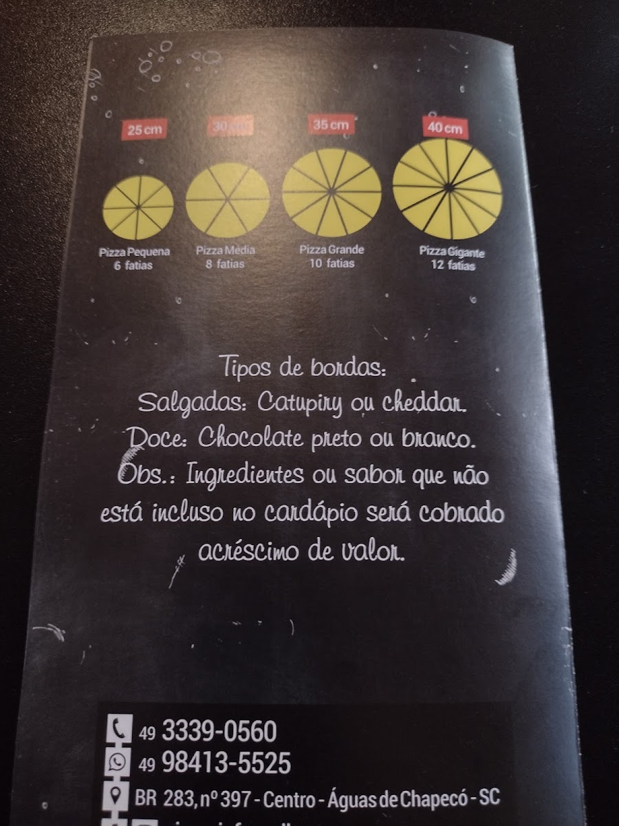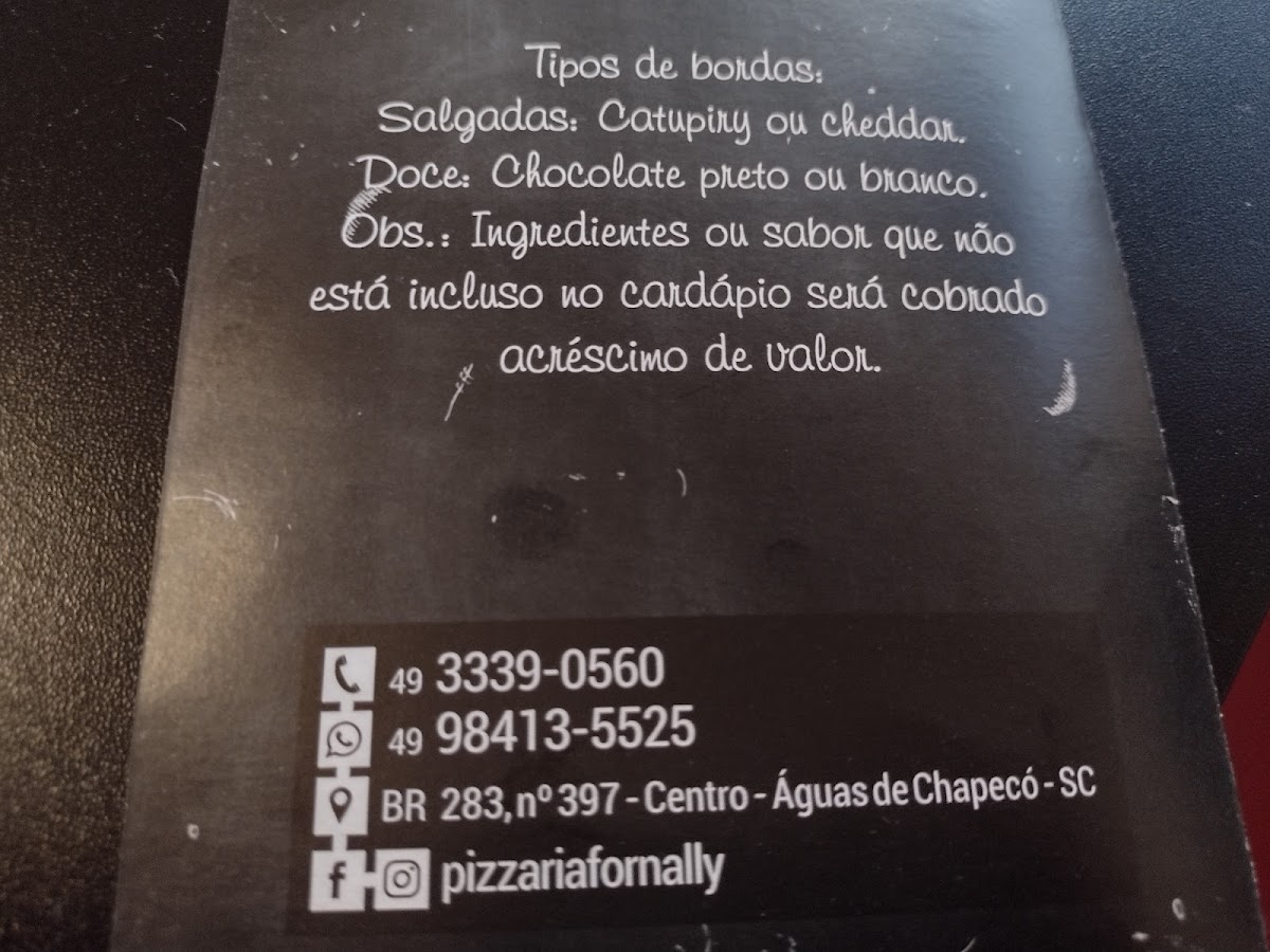 Pizzaria Fornally, nestled along Rodovia SC 283 in Águas de Chapecó, Brazil, offers a vibrant pizza experience that delights locals and visitors alike. The menu features a variety of expertly crafted pizzas, with the Pizza Calabresa standing out as a crowd favorite, known for its rich, balanced flavors and quality ingredients. Customers praise the attentive, warm service and the inviting ambiance, which includes both indoor and open-air seating, perfect for family gatherings or casual meetups. The option for delivery adds convenience without compromising on taste.